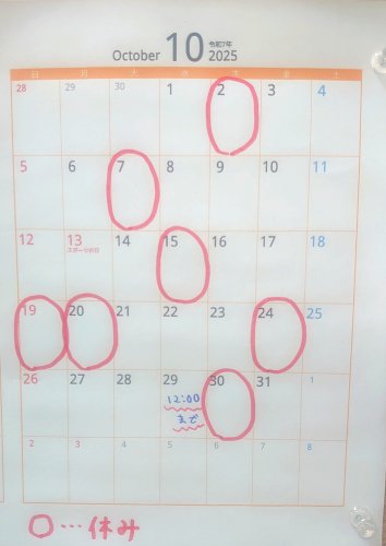 10月の休みのお知らせです。