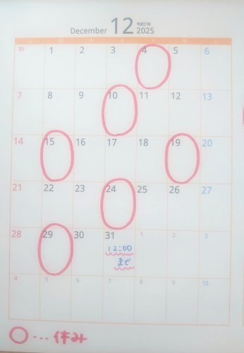 年始は1月1日~5日までお休み、6日(火)から通常営業の予定です。